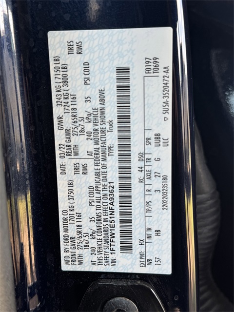 - VIN : 1FTFW1E51NFA93621
